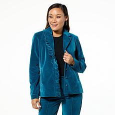 C Wonder Casual Velvet Ruffle Blazer