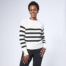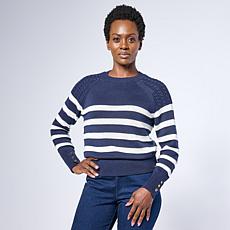 "As Is" Jaclyn Smith Striped Raglan Cable Knit Crew Neck Sweater