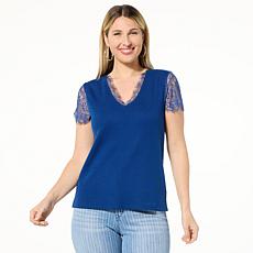 • Tower Hill by Christie Brinkley Lace Detail T-Shirt Tower Hill by Christie Brinkley Lace Detail T-Shirt