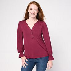 Holiday PriceG by Giuliana 24K Shine Button Front Top with Flare Sleeves- Pricing