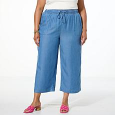 G by Giuliana Woven Denim Pull-Om Wide-Leg Cropped Pant- Pricing