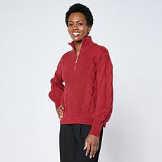 WynneLayers Cotton Blend Cable Detail 1/2-Zip Sweater