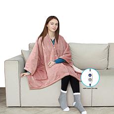 "As Is" Warm & Cozy 64" x 50" Heated Plush to Sherpa Angel Wrap
