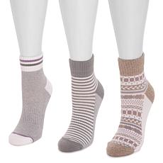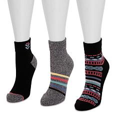 MUK LUKS Women's 3 Pair Pack Quarter Crew Cotton Compression Socks
