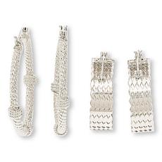 Bellezza Knot and Wide Textured Hoop Earrings 2-Pair Set