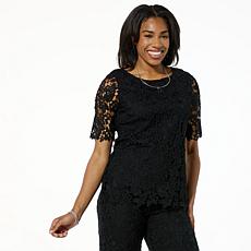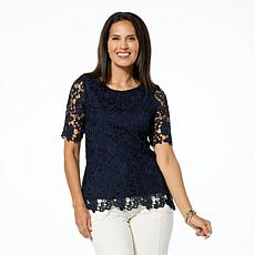 Nina Leonard Elbow Sleeve Lace Top