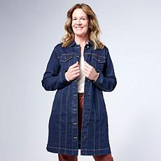 DG2 by Diane Gilman New Classic Stretch Denim Longline Car Coat