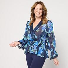 Colleen Lopez Woven Ruffle Front Surplice Blouse