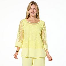 "As Is" Nina Leonard Embroidered Mesh Knit 3/4-Sleeve Tunic