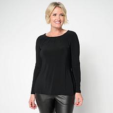"As Is" Nina Leonard Pleated Neck Long-Sleeve Knit Top- Pricing