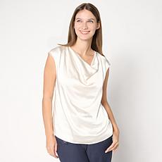 WynneLayers Cotton Curved Hem Cowl Neck Top