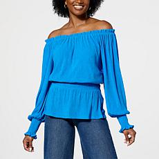 Clearance"As Is" G by Giuliana Off-The-Shoulder Smocked Blouse- Pricing