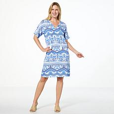 "As Is" G by Giuliana Printed Woven Dolman Sleeve T-Shirt Dress