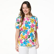"As Is" Nina Leonard Printed Crinkle Knit Dolman Top- Pricing