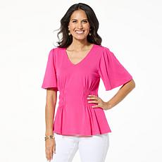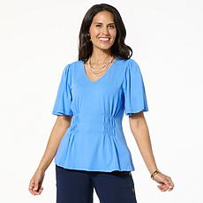 "As Is" DG2 by Diane Gilman Shirred Flutter-Sleeve Top