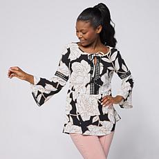 "As Is" Nina Leonard Textured Wave Flutter Sleeve Top- Pricing