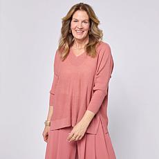 • WynneCollection 3/4-Sleeve V-Neck Baby Boucle Sweater WynneCollection 3/4-Sleeve V-Neck Baby Boucle Sweater