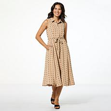 "As Is" Nina Leonard Swiss Dot Sleeveless Button Front Midi Shirt D...- Pricing