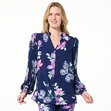 "As Is" Colleen Lopez Printed Woven Crepe Blouson Sleeve Blouse- Pricing