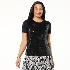 "As Is" G by Giuliana EcoLuxe Sequin Knit Short Sleeve Tee