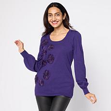 "As Is" Nina Leonard Long-Sleeve Mock-Neck Embellished Sweater Top- Pricing