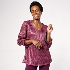 "As Is" Nina Leonard Textured Wave Sequined Balloon Sleeve Top- Pricing