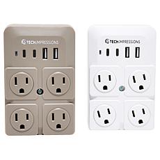 Tech Impressions 2-pack 4-Outlet, USB-C, 2 USB-A Surge Protectors- Pricing