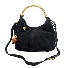 Sharif Legacy Silky Suede Metallic Handle Hobo Bag with Strap