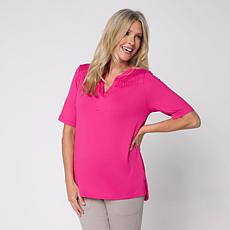 G by Giuliana Cotton Modal Short-Sleeve Top with Trim
