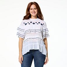"As Is" G by Giuliana Woven Embroidered Ruffle Top- Pricing
