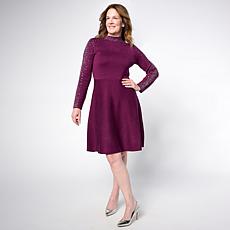 "As Is" Nina Leonard Long Sleeve Mock Neck Fit and Flare Sweater Dress