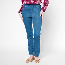 Nina Leonard Stretch Denim Knit Pull-On Narrow-Leg Pant
