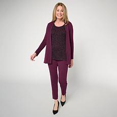 "As Is" Nina Leonard 3-piece Textured Knit Cardigan, Tank & Pant Set