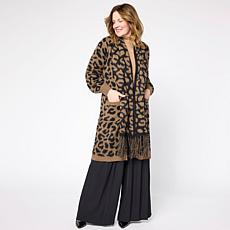 C Wonder Jacquard Knit Coatigan Topper with Scarf