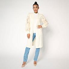 C Wonder Jacquard Knit Coatigan Topper with Scarf- Pricing