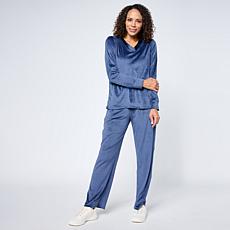 "As Is" Comfort Code Silky Velvet Satin Trim 2-piece Top and Pant S...