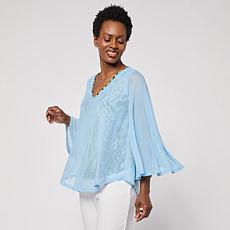 G by Giuliana 24K Shine Button-Front Flared Sleeve Top- Pricing