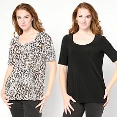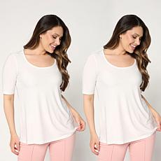 Nina Leonard 2-pack Stretch Knit Elbow-Sleeve Scoop Neck Tops