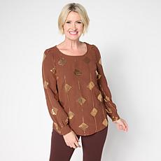"As Is" Nina Leonard Textured Wave Sequined Balloon Sleeve Top- Pricing