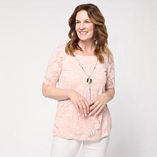 "As Is" Nina Leonard Burnout Knit Elbow Sleeve Necklace Top