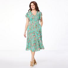 "As Is" Democracy Smocked Waist Flutter Sleeve Midi Dress