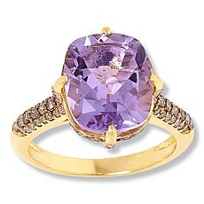 Rarities 14K Gold-Plated 14x10mm Gemstone and 0.49ctw Diamond Ring- Pricing