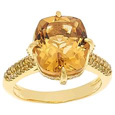 "As Is" Rarities Cushion-Cut Gemstone and Diamond Gold-Plated Ring