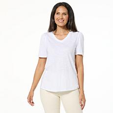 "As Is" G by Giuliana Cotton-Blend Slub Knit Puff Sleeve Tee- Pricing