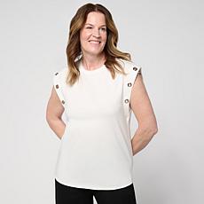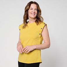 G by Giuliana 24K Shine Button-Front Flared Sleeve Top