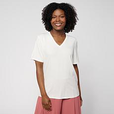 WynneLayers Print or Solid Rayon Spandex V-Neck Tee Shirt