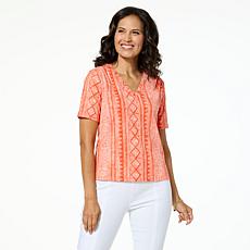 Jaclyn Smith Jacquard Sweater Knit Tee with Button Detail