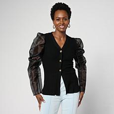 "As Is" C Wonder Organza Sleeve Ribbed Cardigan