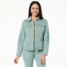 Tower Hill Christie Brinkley Eyelet Embroidered Denim Jacket- Pricing