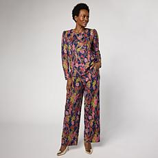 G by Giuliana Printed Woven Wide-Leg Pant with Godets- Pricing